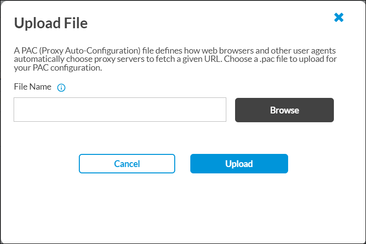 - Click Browse and choose a .pac file to upload for PAC configuration.